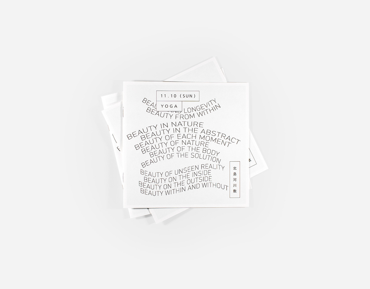 写真展示会のリーフレットデザインをしました。空気感のある美しい写真と、制作にまつわるストーリーを組み合わせてリーフレットの表現を印刷方法と併せて取り組みました。裏面の文字を印字面のコントラストが失わない印圧を本機で調整を繰り返し仕上げました。 - We designed a leaflet for a photography exhibition. We worked on the expression of the leaflet by combining beautiful photographs with a sense of atmosphere and the story behind the production, along with the printing method. We repeatedly adjusted the printing pressure on this machine to finish the letters on the reverse side without losing the contrast of the printed surface.